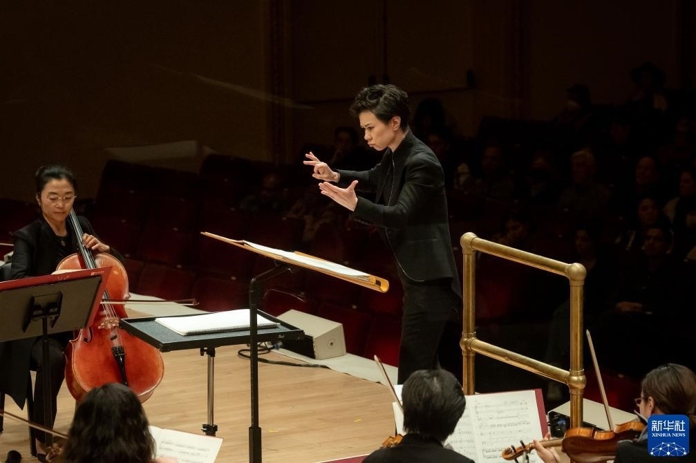 11月24日,中央音樂學(xué)院指揮家陳琳在美國紐約卡內(nèi)基音樂廳執(zhí)棒本次演出。新華社發(fā)(邁克爾·維奧拉果攝)