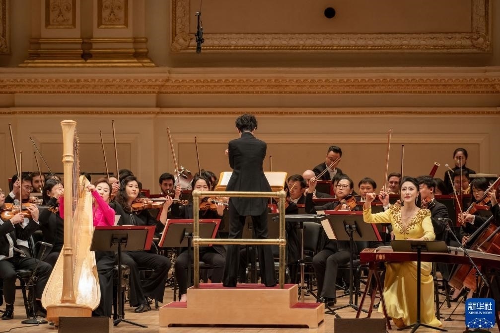 24日晚,中央音樂學(xué)院交響樂團(tuán)時(shí)隔四年重返美國紐約卡內(nèi)基音樂廳,為觀眾帶來中國當(dāng)代作曲家的最新作品。多部作品取材于中國古典詩詞和傳統(tǒng)哲學(xué)著作,展現(xiàn)出古箏、竹笛等中國傳統(tǒng)民族樂器與西洋樂器的碰撞,奏響東西方文化交融的動(dòng)人樂章。