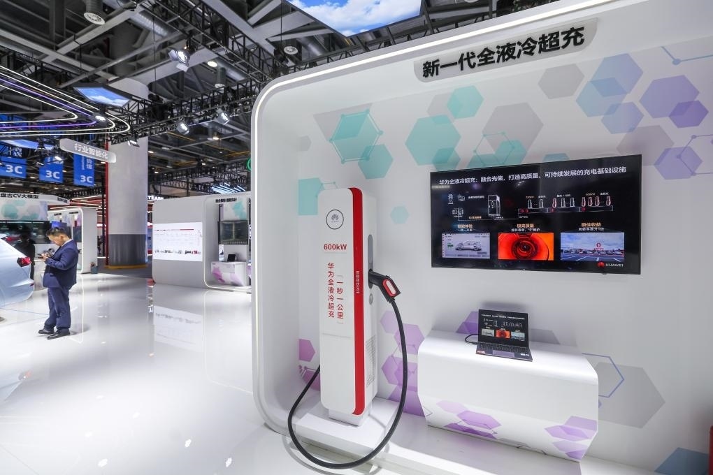 這是11月23日在第二屆全球數(shù)字貿(mào)易博覽會(huì)展館內(nèi)拍攝的華為全液冷超充技術(shù)展示。新華社記者 徐昱 攝