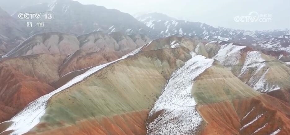 近日,一場(chǎng)大雪讓昌吉百里丹霞風(fēng)景道如同童話(huà)世界一般。沿著S101省道一路向西,從高處俯瞰丹霞,高山南北坡呈現(xiàn)截然不同的風(fēng)光。雪落北坡把層巒疊嶂的山脈裝扮得如水墨丹青,而南坡陽(yáng)光普照,五彩丹霞盡顯婀娜多姿。