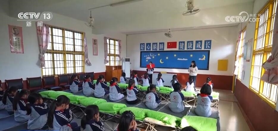 一些鄉(xiāng)村學(xué)校也結(jié)合實(shí)際情況,努力打造午休條件。在湖南株洲這所小學(xué),每個(gè)學(xué)生都擁有一張可以躺著午休的折疊小床,每天中午能保證至少40分鐘的躺睡時(shí)間。