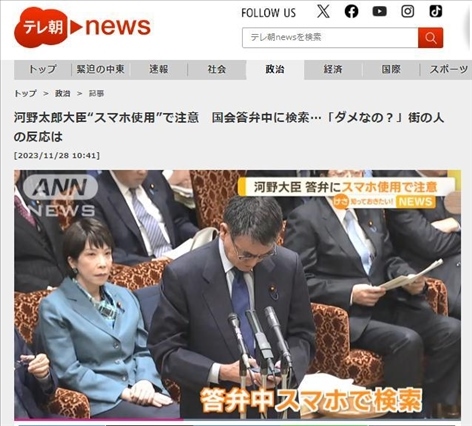 ·據(jù)日媒報(bào)道,27日,日本參議院預(yù)算委員會公開答辯中,數(shù)字大臣河野太郎在回答問題時(shí),拿出手機(jī)試圖查詢資料,被委員長叫停。