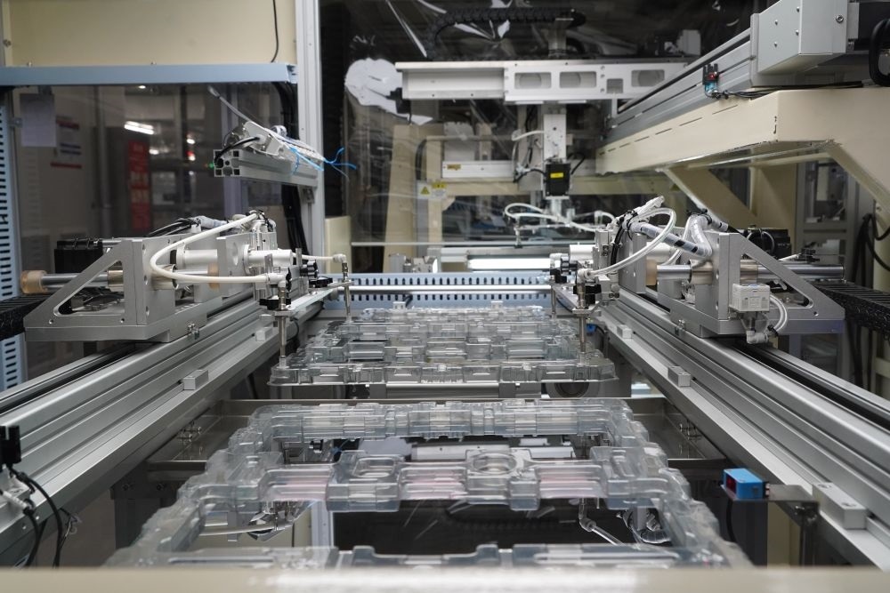 在成都高新區(qū)京東方成都車載顯示基地拍攝的顯示屏自動(dòng)化生產(chǎn)線(2023年9月8日攝)。新華社記者 唐文豪 攝