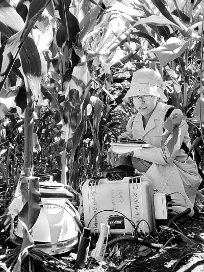“隊(duì)員們每天早上5點(diǎn)就要前往試驗(yàn)田,趕上洪澇就得穿著靴子蹚過(guò)及膝的水,水灌進(jìn)靴筒,就像腿上綁了沙袋走在沼澤地里一樣。每個(gè)人還要提著兩個(gè)設(shè)備采樣,騰不出手扒開(kāi)玉米葉子,大家就用頭頂出了一條路,臉上免不了被葉子劃傷。晚上回寢室,刷掉靴子里的泥,就得晚上12點(diǎn)多了。第二天早上5點(diǎn),又要開(kāi)始新一天的采樣?!眻F(tuán)隊(duì)成員王軼昂說(shuō)。