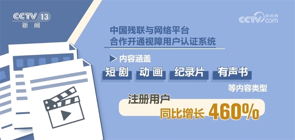數(shù)據(jù)顯示,中國殘聯(lián)與網(wǎng)絡(luò)平臺合作開通視障用戶認(rèn)證系統(tǒng)一年以來,無障礙影視作品已超2000部(集),同比增長超400%,內(nèi)容涵蓋短劇、動畫、紀(jì)錄片、有聲書等內(nèi)容類型,注冊用戶同比增長460%。