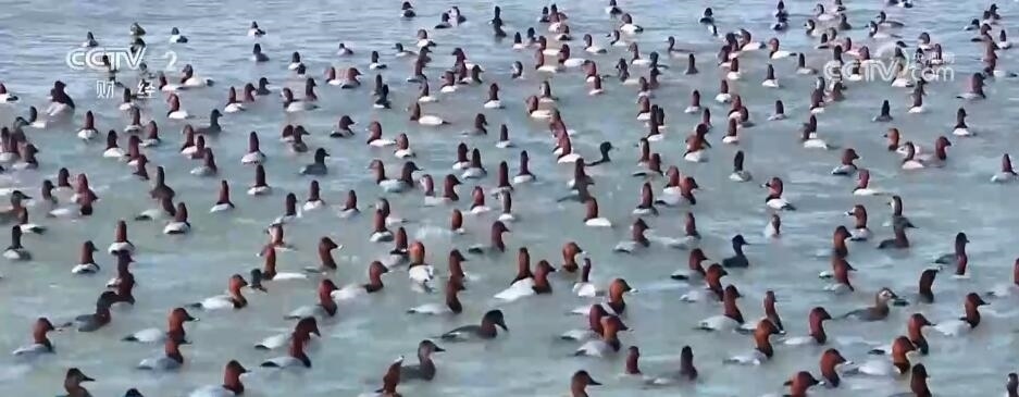 河南:上萬(wàn)只紅頭潛鴨飛抵三門峽黃河濕地越冬