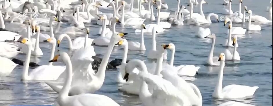 總臺(tái)記者 柳棟:我所在的位置是山東榮成大天鵝國(guó)家級(jí)自然保護(hù)區(qū),多年來(lái)這里形成了煙墩角、天鵝湖和櫻花湖三處大天鵝的集中區(qū)。今年遷徙的1萬(wàn)多只大天鵝,目前九成以上已經(jīng)抵達(dá)這里,僅我所在的保護(hù)區(qū)范圍里就有超過6000多只。這里的工作人員告訴我,這些大天鵝是從3000多公里外的西伯利亞等地區(qū)長(zhǎng)途飛行45天左右才能抵達(dá)的。飛抵后,大天鵝會(huì)在這里越冬,直到來(lái)年三四月份才會(huì)離開。因此,這里的大天鵝不再忙于練習(xí)飛翔和補(bǔ)充體力,而是從容不迫地開啟了度假模式,游客們也可以近距離與它們進(jìn)行互動(dòng)。