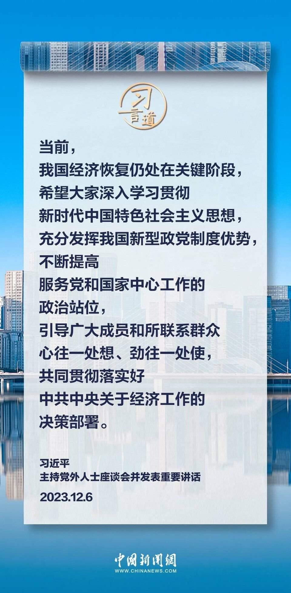 12月6日,中共中央在中南海召開黨外人士座談會(huì),就今年經(jīng)濟(jì)形勢(shì)和明年經(jīng)濟(jì)工作聽取各民主黨派中央、全國(guó)工商聯(lián)負(fù)責(zé)人和無(wú)黨派人士代表的意見和建議。中共中央總書記習(xí)近平主持座談會(huì)并發(fā)表重要講話。