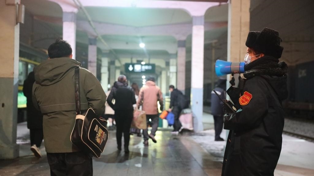 山西大同站鐵路工作人員在疏導(dǎo)進(jìn)出站旅客。(中國(guó)鐵路太原局集團(tuán)有限公司供圖)