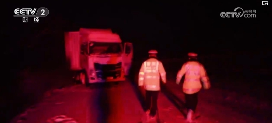 在交警的幫助下,大貨車順利爬坡并駛離高速公路。