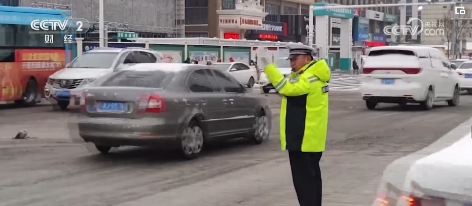 這幾天,山東德州城區(qū)各大隊民警全部到崗到位,疏導(dǎo)交通、鏟雪除冰。