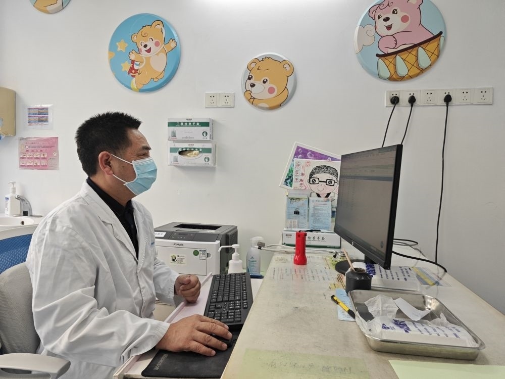 長春市兒童醫(yī)院中西醫(yī)結合科主任薛斌在舒蘭市人民醫(yī)院兒科療區(qū)查房。受訪對象供圖