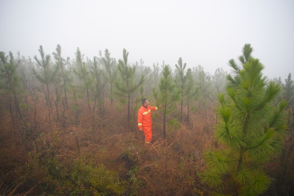 12月12日,護(hù)林員在河南省南陽市淅川縣馬蹬鎮(zhèn)葛家溝國儲林基地巡護(hù)。新華社記者郝源 攝