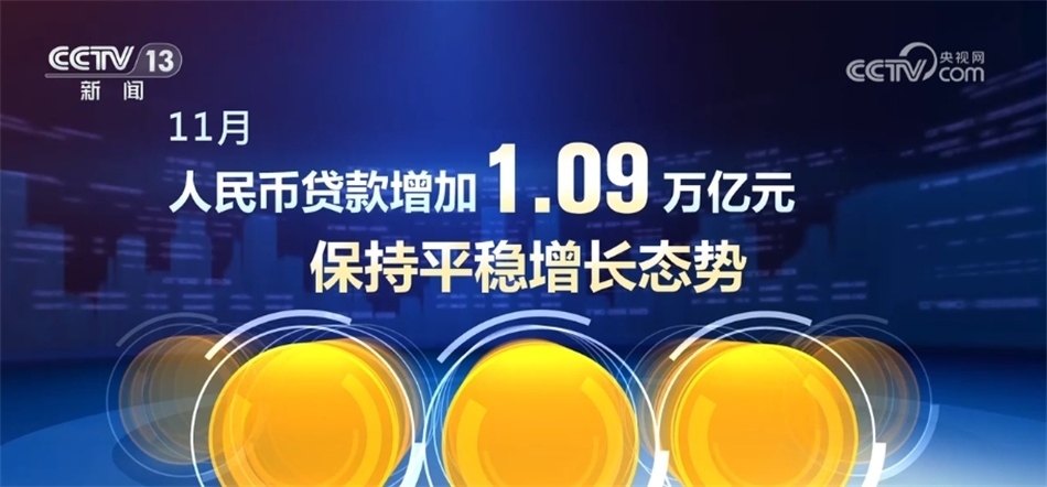 11月當(dāng)月人民幣貸款增加1.09萬億元,保持平穩(wěn)增長態(tài)勢(shì)。