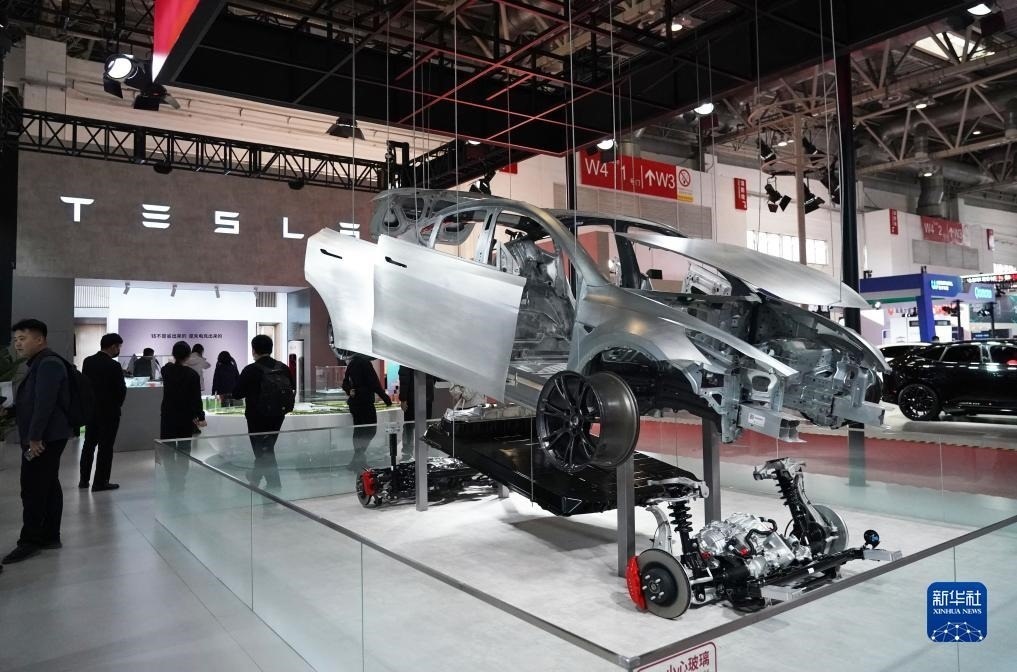 這是首屆中國國際供應鏈促進博覽會智能汽車鏈展區(qū)的特斯拉展位(2023年11月30日攝)。新華社記者 任超 攝