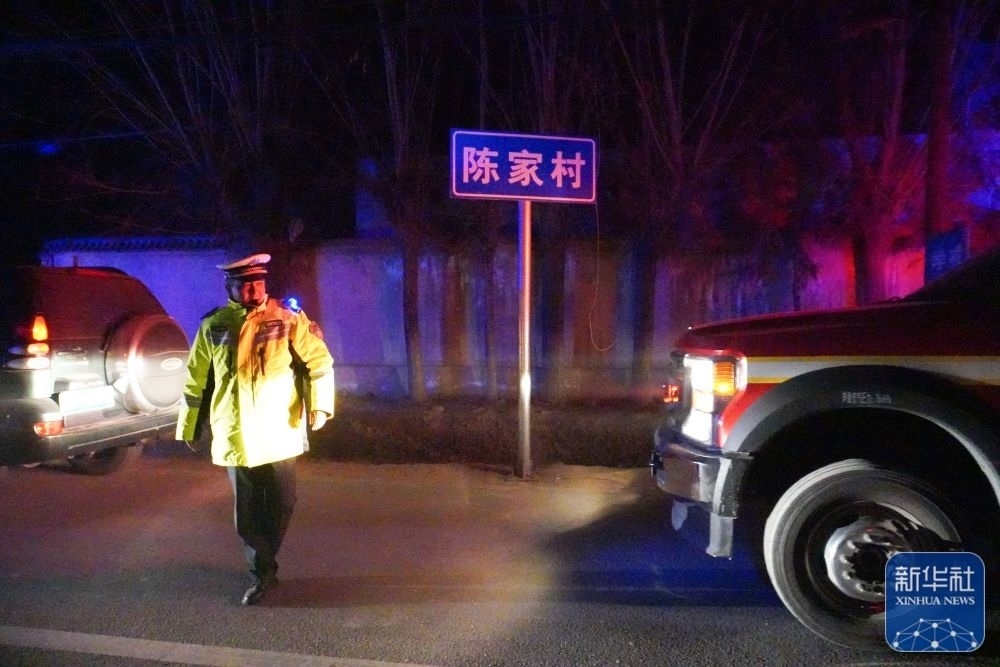 12月19日,在甘肅省臨夏回族自治州積石山保安族東鄉(xiāng)族撒拉族自治縣大河家鎮(zhèn)陳家村,一名交警指揮救援車輛進入救援現(xiàn)場。新華社記者 馬希平 攝