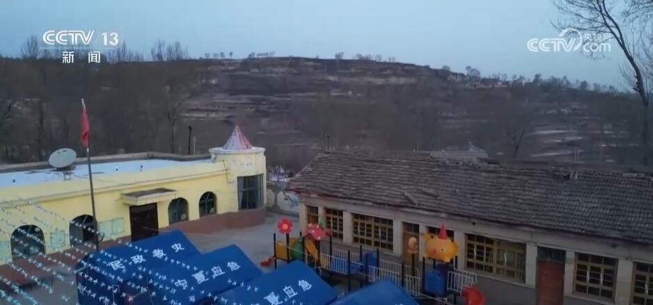 總臺記者 馬麗:我現(xiàn)在是在積石山縣前嶺小學(xué)附屬幼兒園。目前,這里也是前嶺村的一個集中安置點。地震發(fā)生后,這里的主體校舍沒有明顯受損,并且校內(nèi)廣場有大面積的空地,所以被作為了臨時安置點,來安置附近的40余名村民。其中,有近30名是小學(xué)生和幼兒園的小朋友。他們有些是村民自己的孩子,有些是附近親戚家的孩子??紤]到這里的環(huán)境更加穩(wěn)定和保暖,孩子們也被聚集到了這里?,F(xiàn)在,正是早起的時間,在安置點也升起了裊裊炊煙,陽光從遠處照了過來。