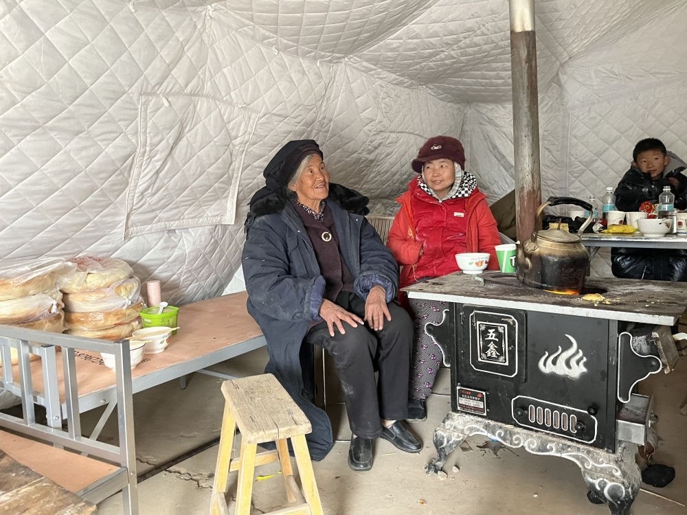 張郭家村是個小村,總共才350多人。地震發(fā)生后,全村絕大多數(shù)房屋受損,通村道路遭遇塌方,萬幸無人遇難。群眾積極自救互救,州縣鄉(xiāng)三級干部下沉,工作有序開展。19日晚至20日晨,部隊官兵徹夜為村上搭建起26頂帳篷。零下十幾度的夜晚,群眾再也不用在戶外燒柴取暖了。