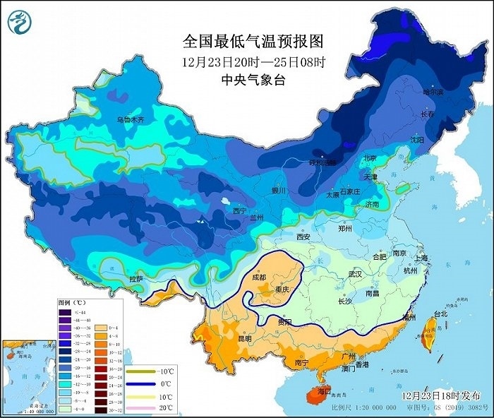 央視網消息:據(jù)中央氣象臺網站消息,中央氣象臺12月23日18時繼續(xù)發(fā)布低溫藍色預警:預計,23日20時至25日08時,江淮、江南、華南以及山東西北部和半島地區(qū)、河北南部和西北部、山西北部、陜西北部等地日最低氣溫較歷史同期偏低5~7℃,其中浙江中部、江西中部等地偏低7℃以上,最低氣溫0℃線將位于貴州南部至華南北部一帶。