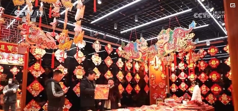 在浙江義烏國(guó)際商貿(mào)城,來(lái)自全國(guó)各地的采購(gòu)商們抓緊選購(gòu)著年貨。市場(chǎng)里的龍?jiān)禺a(chǎn)品頗受客商們歡迎,對(duì)聯(lián)、年畫、福字、紅包等產(chǎn)品,將從浙江義烏發(fā)往全球各地。