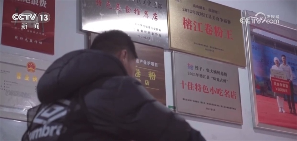 賽場(chǎng)上是為村莊榮譽(yù)而戰(zhàn)、為自己夢(mèng)想飛奔的“球場(chǎng)英雄”,脫下球衣,董永恒是在市井煙火氣中踏實(shí)生活的普通人。在“村超”爆火之前,董永恒還是一名賣榕江卷粉的店主,他和家人一起經(jīng)營(yíng)的這家店在2022年被當(dāng)?shù)卦u(píng)為“榕江卷粉王”。
