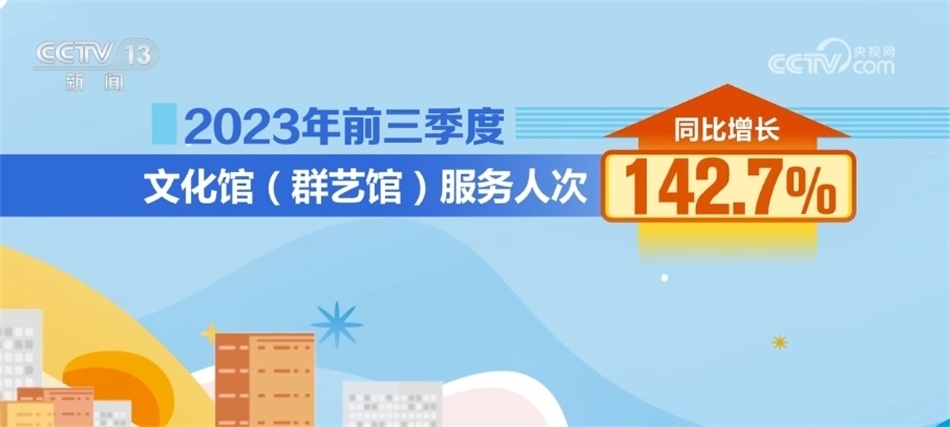 據(jù)統(tǒng)計,2023年前三季度公共圖書館總流通人次同比增長55.2%;2023年前三季度,全國文化館培訓(xùn)班次近38萬個,同比增長50%;文化館(群藝館)服務(wù)人次同比增長142.7%。