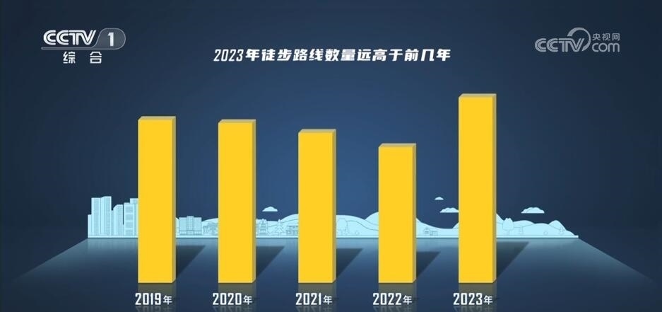 數據分析發(fā)現,2023年徒步路線的數量遠高于前幾年,相比2019年的漲幅接近15%。