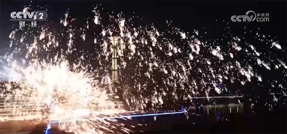 新年將至,大南門(mén)歷史文化街區(qū)里豐富多樣的民俗活動(dòng)吸引了大批的游人。其中,特色表演滾花龍表演講究“圓”而“猛”,龍身舞動(dòng)起來(lái)后更像是滾動(dòng)的花環(huán),預(yù)示著新的一年里希望大家活力滿滿、努力奮進(jìn)的美好祝愿。1600℃的鐵汁被高高拋起,被木板奮力打散,瞬間,夜空中萬(wàn)點(diǎn)星辰散開(kāi),美不勝收。