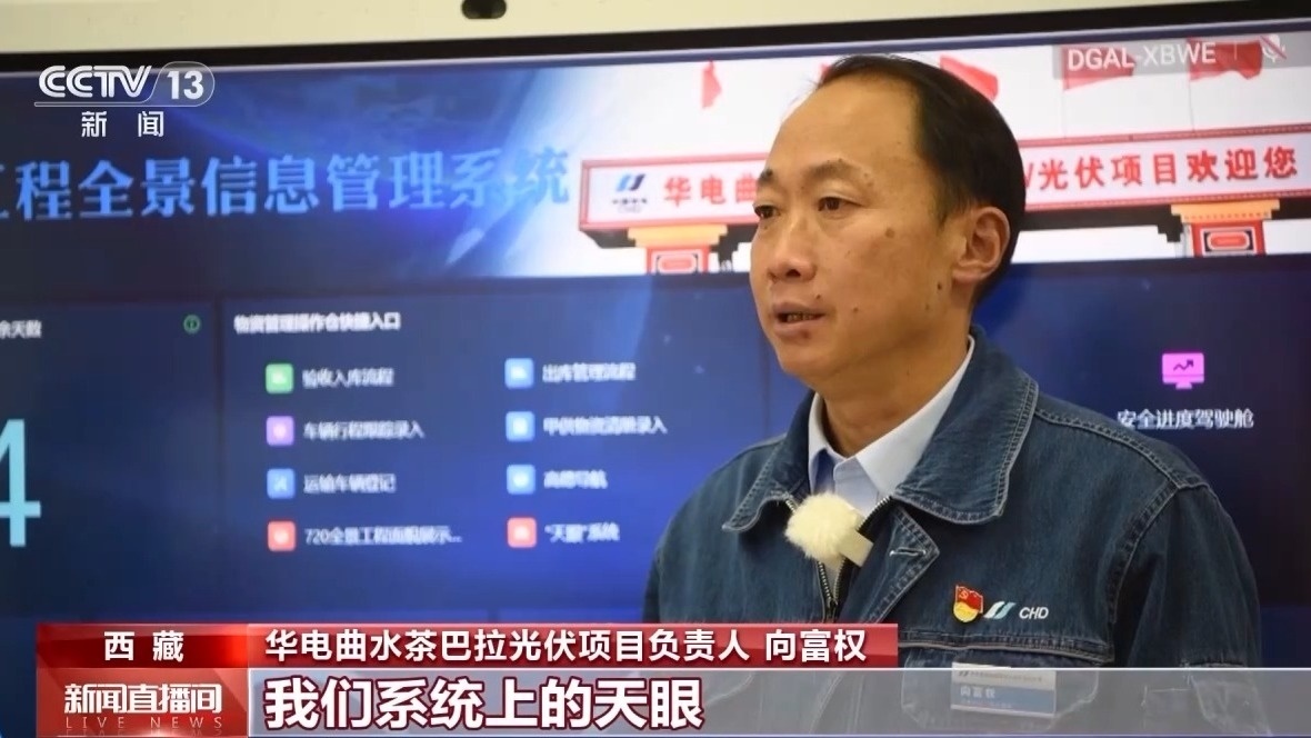 華電曲水茶巴拉光伏項目負責(zé)人 向富權(quán):系統(tǒng)涵蓋現(xiàn)場管控、物資供應(yīng)、資源投入等工程管理核心關(guān)鍵要素,管理人員可以實時掌控工程關(guān)鍵要素信息,還可以幫助工作人員及時消除異常狀況和管控風(fēng)險。