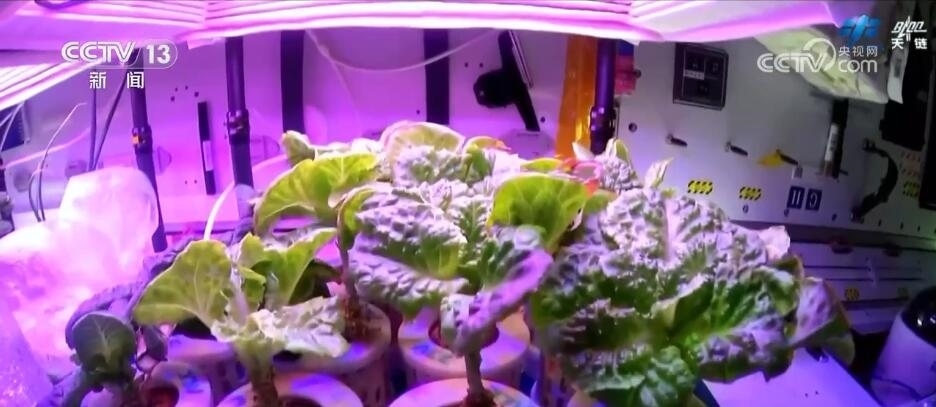 這張圖片展示的是神舟十七號(hào)航天員乘組新一代“太空菜園”喜獲豐收的場(chǎng)景,圖片中,由神十六、神十七乘組接力種植的生菜長(zhǎng)勢(shì)喜人。