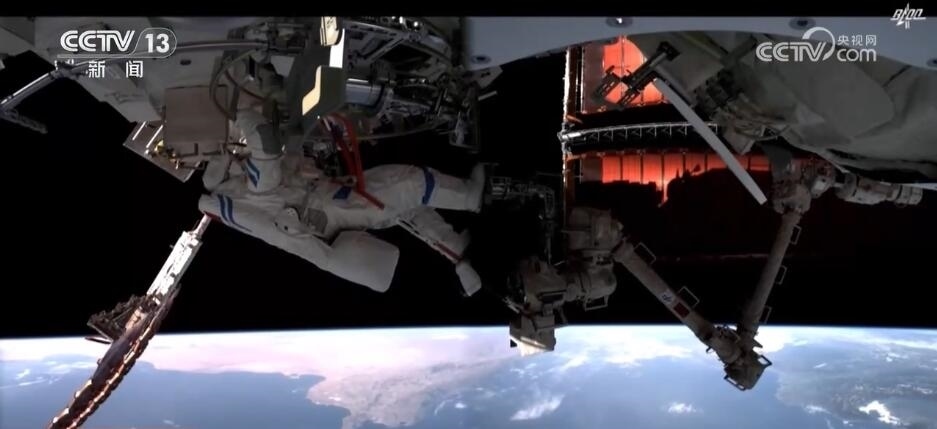 2023年10月26日19時(shí)34分,神舟十六號(hào)航天員乘組打開(kāi)“家門(mén)”,歡迎神舟十七號(hào)航天員湯洪波、唐勝杰、江新林入駐“天宮”。兩個(gè)乘組在軌共同生活了約5天后,神舟十六號(hào)航天員在返回地球途中,還完成了此次飛行任務(wù)最后一項(xiàng)工作,首次拍攝了以地球?yàn)楸尘暗闹袊?guó)空間站全景高清照片。