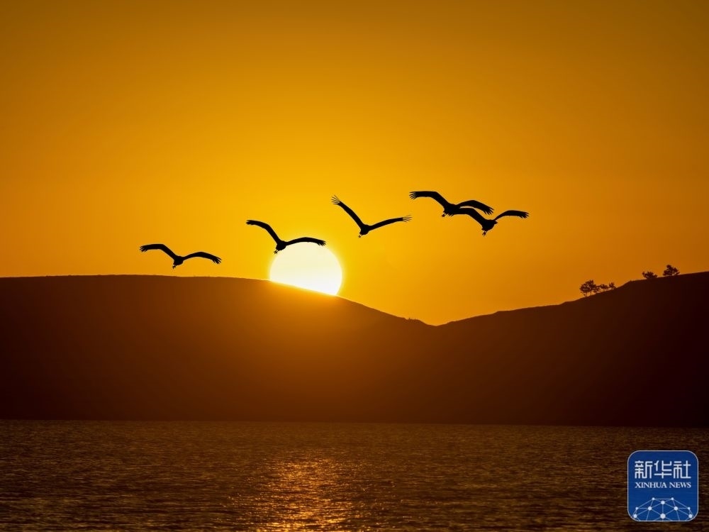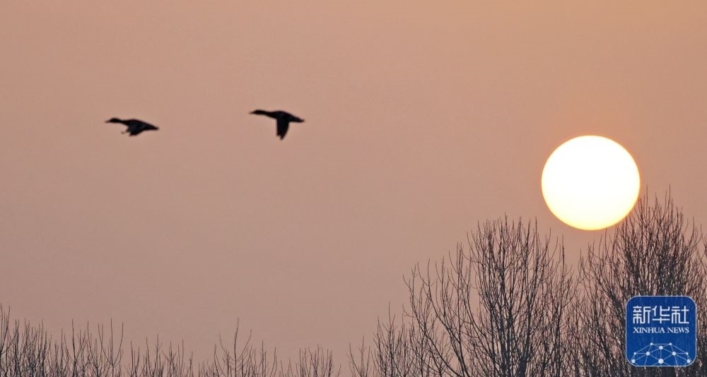 1月1日,在山東省臨沂市郯城縣,鳥兒迎著晨光飛翔。新華社發(fā)(張春雷 攝)