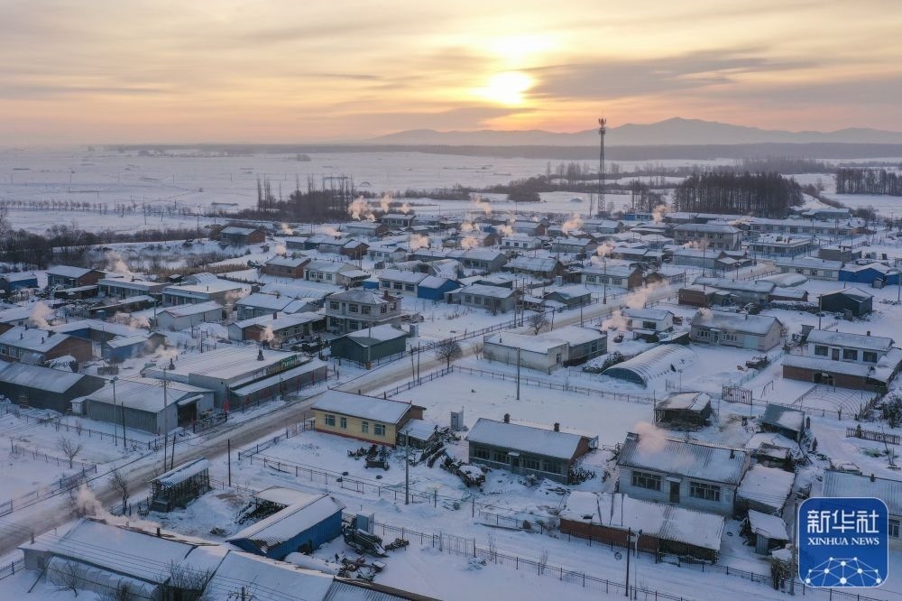 這是1月1日拍攝的黑龍江省尚志市老街基鄉(xiāng)龍王廟村日出景觀(無人機(jī)照片)。新華社發(fā)(宋洋 攝)