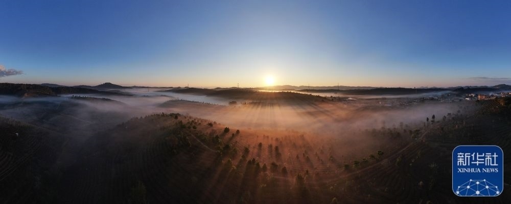 1月1日,云南省景洪市萬畝茶園沐浴在新年的陽光中(無人機(jī)全景照片)。新華社發(fā)(李云生 攝)