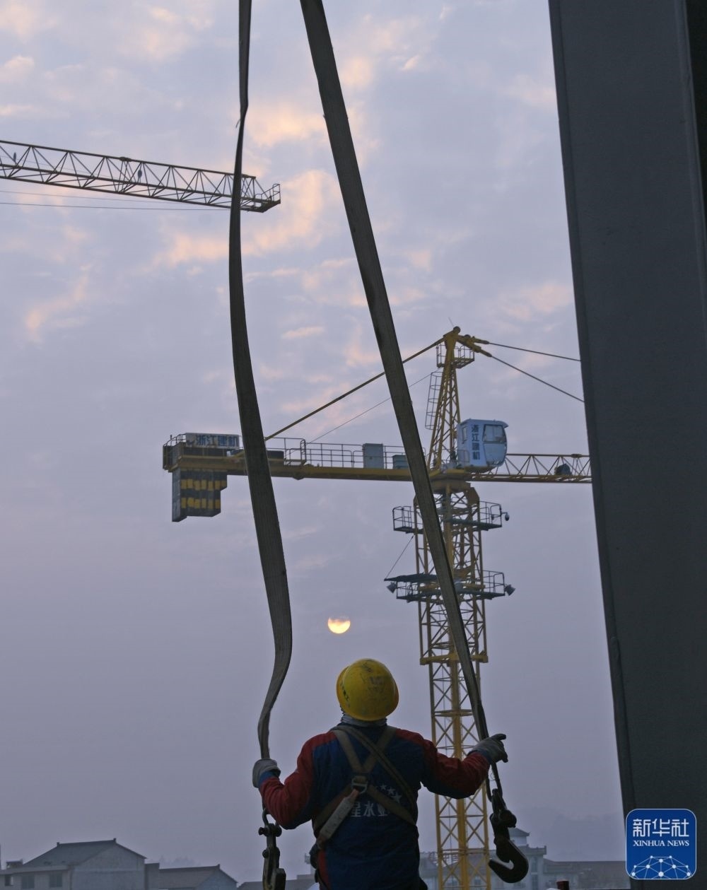 1月1日,工人迎著朝陽在浙江省杭溫高鐵臺州市仙居站項目施工現(xiàn)場進(jìn)行施工作業(yè)。新華社發(fā)(王華斌 攝)