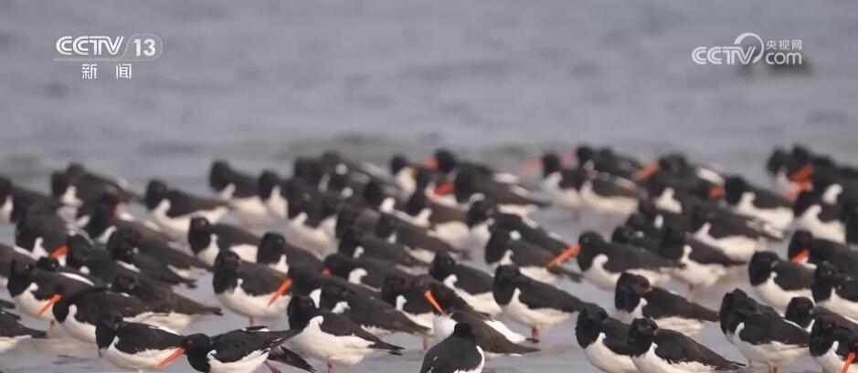江蘇如東:大批蠣鷸聚集沿海灘涂 場(chǎng)面壯觀