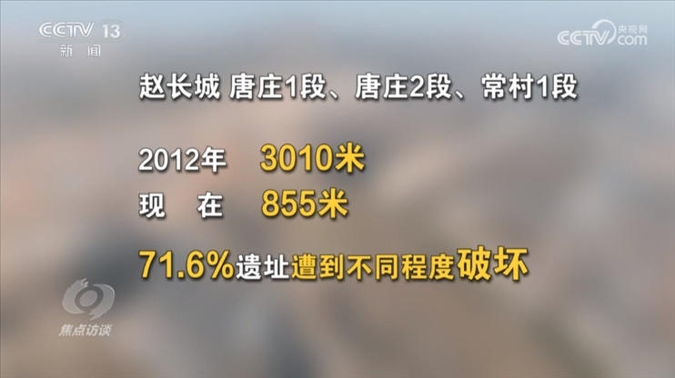 數(shù)據(jù)顯示:2012年,河南省認(rèn)定趙長(zhǎng)城唐莊1段、唐莊2段、常村1段,三段長(zhǎng)城實(shí)際共存在3010米,而現(xiàn)在,遺址僅存在855米,71.6%長(zhǎng)度的遺址已遭到不同程度破壞,令人無比痛心。