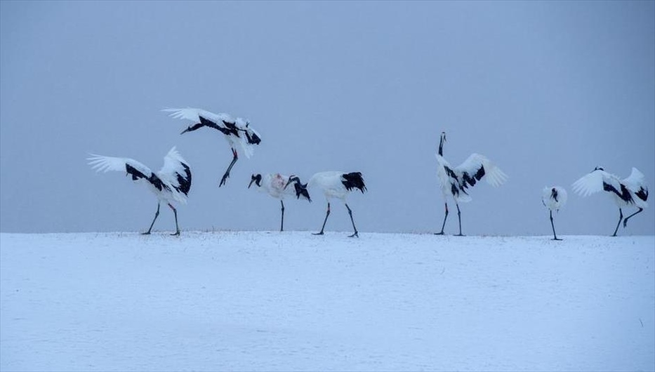 2024年1月4日,黑龍江齊齊哈爾,扎龍自然保護(hù)區(qū),丹頂鶴雪中漫步。
