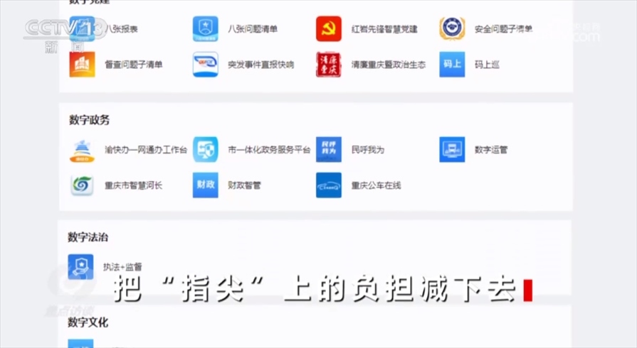 工作重心向基層服務轉變,才能切實看到為基層減負的實效。2021年,重慶市一體化、智能化、數(shù)字化政務工作平臺“渝快政”正式發(fā)布。“渝快政”在全市范圍內(nèi)實現(xiàn)了上下層級、橫向跨部門之間的協(xié)同,一個“渝快政”App就可以支持過去40多項高頻次的政務辦公應用,過去各部門App的相應功能、各種工作群都整合在了“渝快政”一個App里面。一表通、“141”基層智治平臺也已經(jīng)接入了“渝快政”,正在向全市推廣。現(xiàn)在,文勇手機里的53個工作群已經(jīng)解散,郝歡手機里十幾個部門App也已經(jīng)被整合到“渝快政”。?