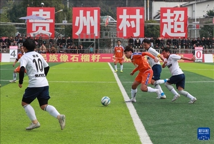 1月6日,在貴州省榕江縣“村超”球場,兩支村級球隊進行比賽。新華社發(fā)(羅京來攝)