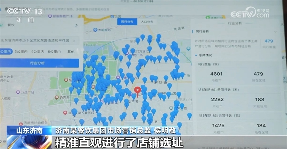 濟(jì)南某餐飲集團(tuán)市場(chǎng)營(yíng)銷總監(jiān) 侯明敬:我們通過“濟(jì)南公共數(shù)據(jù)開放網(wǎng)”上的“泉城商業(yè)選址”應(yīng)用,精準(zhǔn)直觀進(jìn)行了店鋪選址。比如說兩公里內(nèi)餐飲同行有479家,人口總量超過了24萬(wàn)人,其中31—50歲的比例最大,占到了29.9%,這和我們這家餐廳比較適合商務(wù)聚會(huì)、家庭聚會(huì)的市場(chǎng)定位非常吻合。