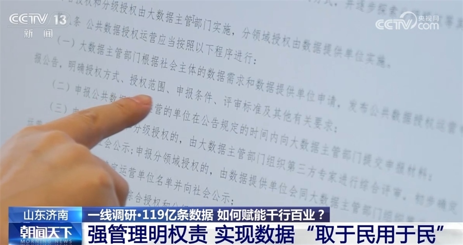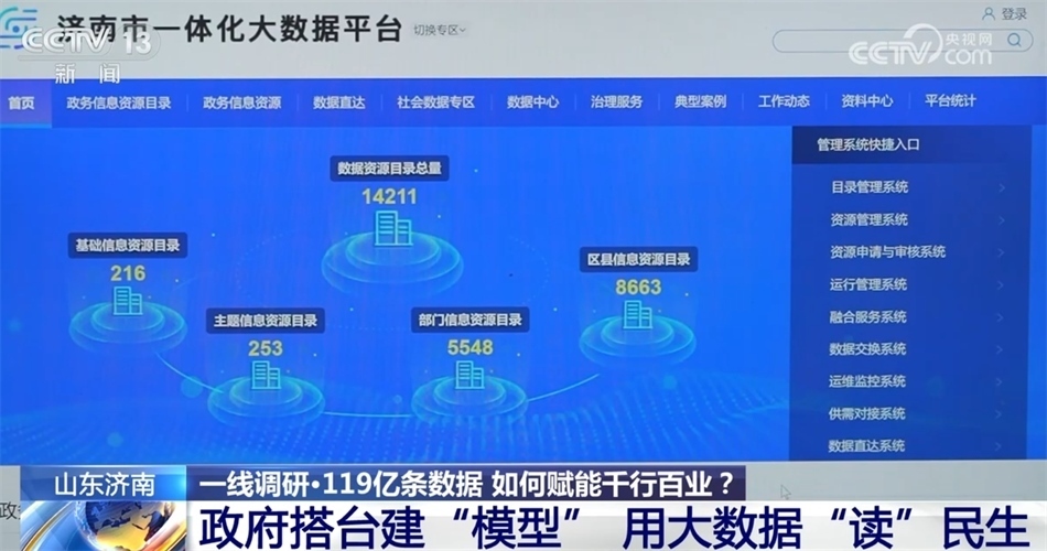 央視網(wǎng)消息:一線調(diào)研,1月12日我們來關(guān)注“數(shù)據(jù)”。在山東濟(jì)南,政府部門整合了119億條公共數(shù)據(jù),創(chuàng)新各種應(yīng)用場(chǎng)景,不僅讓百姓辦事更便利,也給不少中小企業(yè)提供了決策支持。這百億條數(shù)據(jù)是如何賦能千行百業(yè)的?來看記者的報(bào)道。