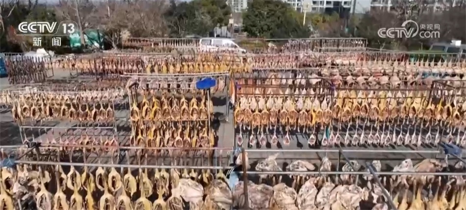 江蘇淮安:雞鴨魚(yú)肉掛滿架 洪澤湖畔臘味香