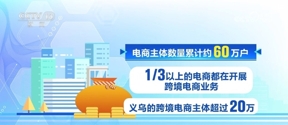 2023年,義烏的市場(chǎng)經(jīng)營(yíng)主體突破100萬(wàn)戶。其中,新設(shè)電商主體17.57萬(wàn)戶,同比增長(zhǎng)48.33%。電商主體數(shù)量累計(jì)約60萬(wàn)戶,而三分之一以上的電商都在開展跨境業(yè)務(wù),義烏的跨境電商主體超過20萬(wàn)。