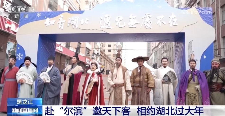 這些天,一群來自湖北的特殊游客抵達(dá)黑龍江哈爾濱,開啟他們的冰雪之旅。他們是湖北省文化和旅游廳組織扮演的“歷史名人天團(tuán)”,既有屈原、伯牙子期等,也有李白、蘇東坡等曾在湖北留下著名詩(shī)篇的文人。他們?cè)谥醒氪蠼志凼?,“拼”?shī)詞展音律,傳遞傳統(tǒng)文化之美。在暢享北國(guó)風(fēng)光的同時(shí),也為游客們送上一場(chǎng)超級(jí)文旅秀和文旅大禮包,邀請(qǐng)全國(guó)游客“去湖北過大年”。