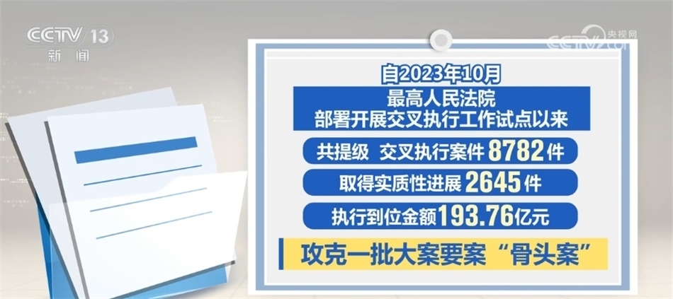 最高人民法院介紹,執(zhí)行難中常見被執(zhí)行人是當?shù)刂匾髽I(yè)、納稅大戶,甚至是重點國企或行政部門等情況。交叉執(zhí)行就是要讓接受指定的法院在不受牽絆、沒有包袱、完全依法自主的條件下力推案件執(zhí)行。據(jù)統(tǒng)計,開展交叉執(zhí)行工作試點以來,共提級、交叉執(zhí)行案件8782件,取得實質(zhì)性進展2645件,執(zhí)行到位金額193.76億元,攻克了一批大案要案“骨頭案”。最高人民法院要求,上級法院發(fā)現(xiàn)原執(zhí)行法院存在消極執(zhí)行、拖延執(zhí)行等執(zhí)行不力情形,發(fā)現(xiàn)違紀違法問題線索的,應(yīng)當嚴肅依紀依法查處、追究責任。