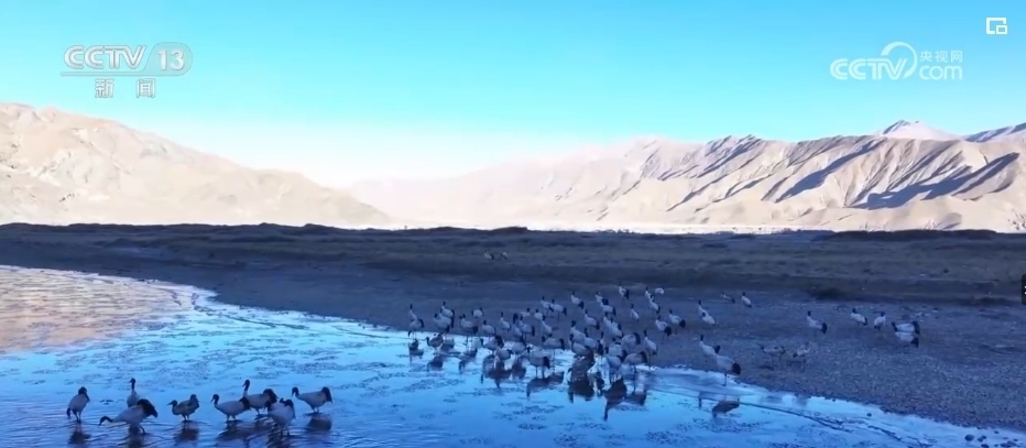 西藏的越冬水鳥主要有黑頸鶴、斑頭雁、赤麻鴨等。監(jiān)測隊(duì)設(shè)立了505個(gè)觀測點(diǎn),共記錄調(diào)查軌跡數(shù)407條,觀測到水鳥45種。其中,包括兩種國家一級保護(hù)動(dòng)物,分別是黑頸鶴和白尾海雕。7種國家二級保護(hù)動(dòng)物,分別是灰鶴、鴛鴦、白額雁、斑頭秋沙鴨、黑頸鸊鷉、角鸊鷉、花臉鴨。還有重要生態(tài)、科學(xué)、社會(huì)價(jià)值的陸生野生動(dòng)物36種。