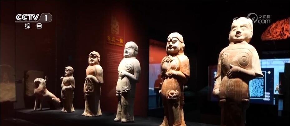 帶著濃濃異域風(fēng)情的還有晉陽古城遺址出土的列隊成陣的駱駝俑、胡人俑。專家表示,這些文物都反映出古代絲綢之路上,晉陽曾是東西方文明交流十字路口的重要古城。在展出的1000多件文物中,唐代郭行墓壁畫也十分引人注目,墓主郭行曾追隨唐太宗李世民,是一名武將。