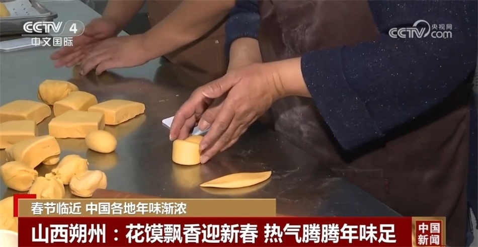 在山西朔州市的一家面塑花饃店里,面點(diǎn)師傅們正在趕制花饃等傳統(tǒng)美食,為即將到來的新春佳節(jié)做足準(zhǔn)備。由果蔬調(diào)色、純手工制作的花饃不僅口感好,而且造型精美,備受顧客青睞。