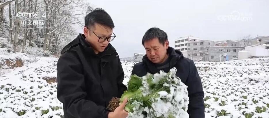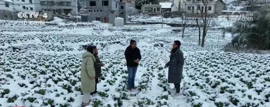 在貴州畢節(jié)螺絲村蔬菜基地,田間地頭白茫茫一片。為應(yīng)對(duì)低溫凝凍天氣,當(dāng)?shù)剞r(nóng)技人員現(xiàn)場查看蔬菜長勢,為農(nóng)戶講解蔬菜防凍知識(shí),指導(dǎo)做好防寒抗凍措施。